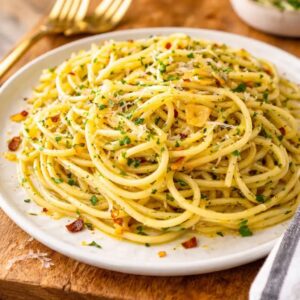 Boil pasta in a pot, then sauté garlic in olive oil. Mix the pasta with the garlic oil and add chili flakes or grated cheese for flavor.