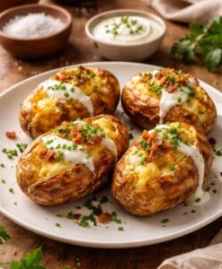 A baked potato is one of the easiest meals you can prepare in a dorm or small apartment.