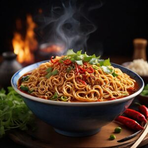 Cook the noodles according to the package instructions. In a pan, stir-fry vegetables such as cabbage, carrots, or green onions, then mix in the cooked noodles.